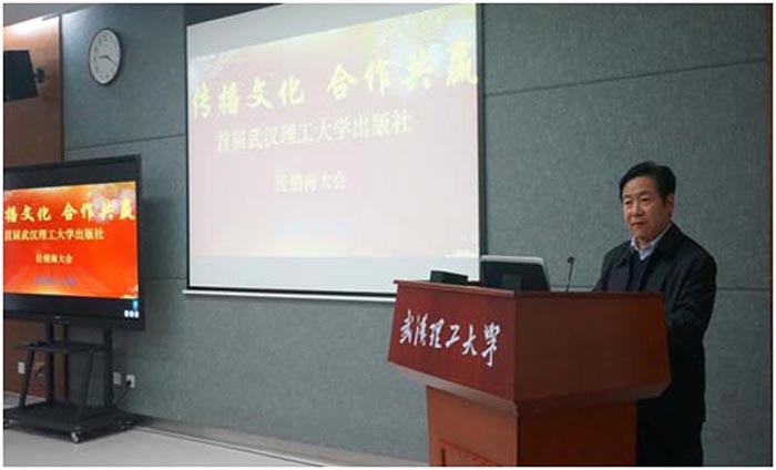 首先,武汉理工大学出版社阎高程社长致欢迎辞,介绍了武汉理工大学出版社30多年的发展历程及取得的成绩。阎高程社长表示,武汉理工大学出版社将秉承“延学界名师、铸教苑精品”的教材出版理念,依托学校、立足行业、面向全国,走特色发展之路,全面落实图书质量保障体系,大力拓展市场销售渠道,积极探索出版业的转型升级与融合发展,努力出版更多的精品图书;希望和各个经销单位加强合作,共同创造和成就社店合作的辉煌。
