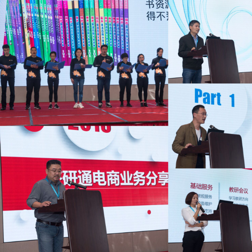 本次大会表彰了2018财年全国十一位优秀代理商,其中五位各具代表性的优秀代理商及团队分享了其宝贵的销售经验。麦片科技(深圳)有限公司的刘昕瑞做了以“外研通电商业务”为主题的分享;来自潍坊荣年教育科技有限公司的宗亮介绍了潍坊地区在开学季及寒暑假两大销售黄金时期及销售淡季不同的营销策略;来自大连市圣瑞杰数码科技有限公司的江红梅从教学服务及市场建设与多元化的销售方式两大方面进行了经验分享;来自重庆浩恩科技有限公司的张瑞峰介绍了通过市级英语演讲比赛、各级教研活动等途径进行点读笔推广的案例。来自桂林耕耘文化传播有限公司的团队通过幽默诙谐的小品和声情并茂的诗歌朗诵为大家展现了他们在日常工作中如何与盗版点读笔商家斗智斗勇并最终赢得市场。代理商们的分享精彩澎湃,赢得了阵阵掌声。