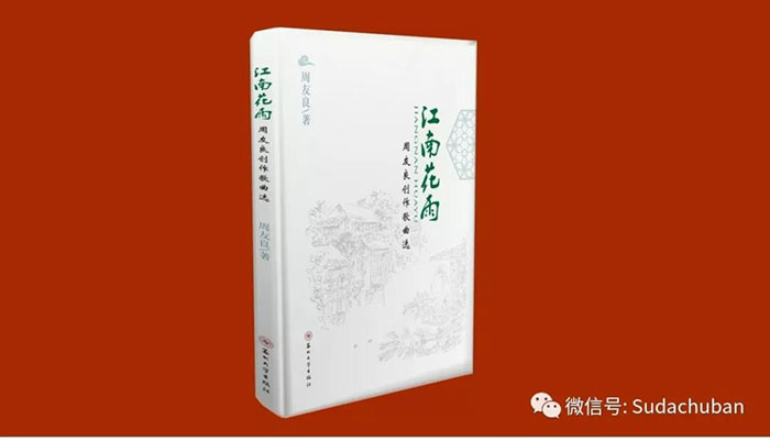 近日,苏州大学出版社出版了苏州著名作曲家周友良先生的专著《江南花雨:周友良创作歌曲选》。该书收录了周友良先生创作的《枫桥夜泊》等歌曲作品90余首,作品题材广泛,风格多样,共分“东方情韵多彩家园”“心在江南梦在江南”“家乡歌谣行吟枫桥”“故乡情思水韵沧浪”“醉美江南中华一家”五部分,是作者近四十年歌曲创作的辉煌成就的总结,书中收录的一些作品曾是全国“五个一工程”奖、“文华奖”、中国艺术节艺术大奖等各种比赛、评比中的获奖作品。
