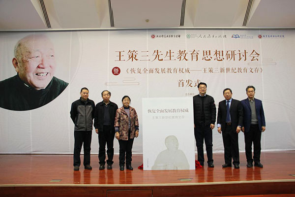 2019年1月5日,王策三先生教育思想研讨会暨《恢复全面发展教育权威──王策三新世纪教育文存》首发式在北京师范大学英东学术会堂隆重举行。来自全国各地的专家学者以及王策三先生生前的同事、学生和北京师范大学师生等130余人出席了此次研讨会,共同缅怀和追思新中国教学论学科重要奠基人、著名教育理论家、中国教育学会教育学分会学术顾问王策三先生,同时对王策三先生教育思想开展了研讨。会议由北京师范大学教育学部和人民教育出版社联合主办,北京师范大学课程与教学研究院、教育基本理论研究院承办。