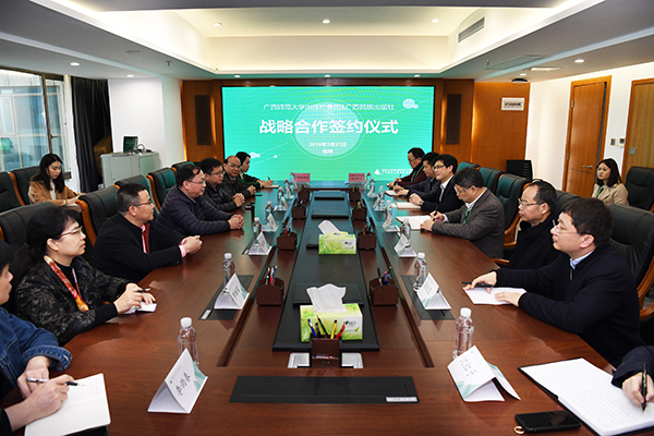 3月27日,广西师范大学出版社集团与广西民族出版社举行战略合作签约仪式,广西师范大学出版社集团党委书记、董事长张艺兵和广西民族出版社党总支部书记、社长石朝雄分别代表双方签署协议。