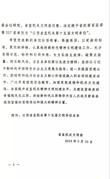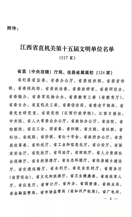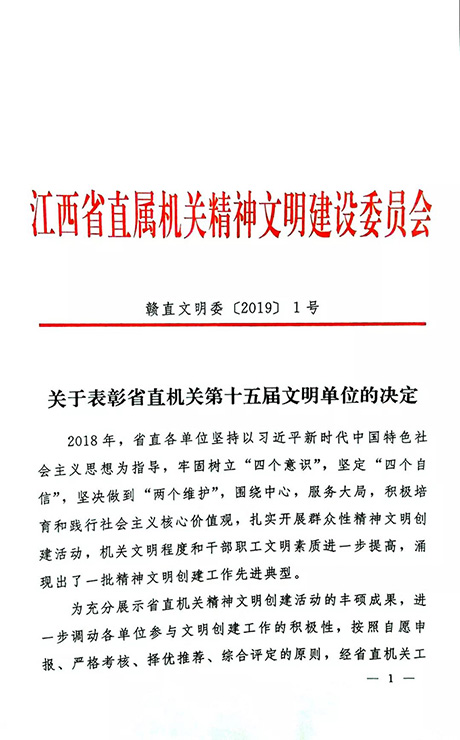 日前,省直机关文明委下发《关于表彰省直机关第十五届文明单位的决定》,江西高校出版社荣获“江西省直机关第十五届文明单位”称号。