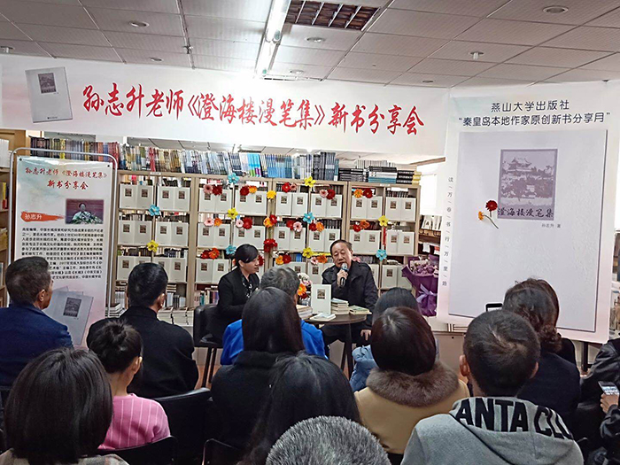 第二场,2019年3月30日,燕山大学出版社出版的《澄海楼漫笔集》新书分享会在秦皇岛市五兴图书广场举行。本书作者孙志升出席分享会,活动由五兴图书广场总经理高丽莉女士主持。
