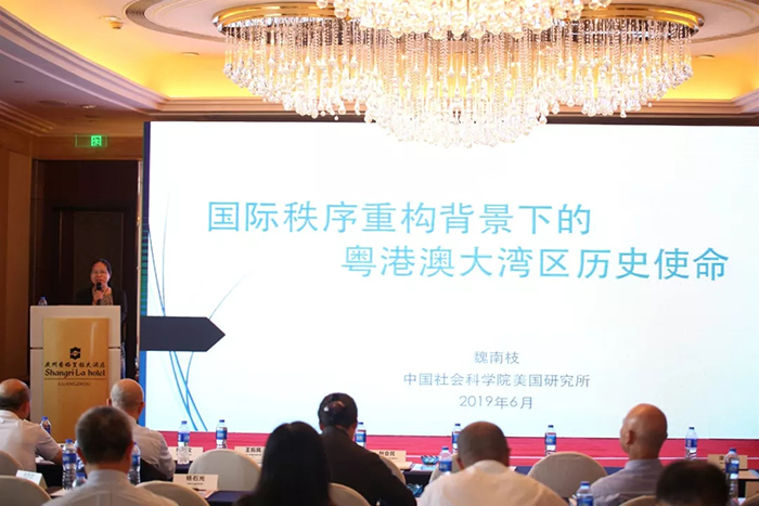 中国社会科学院美国研究所社会文化研究室副主任、副研究员魏南枝解说了国际大环境下的粤港澳大湾区使命,发表了《国际秩序重构背景下的粤港澳大湾区历史使命》,她比较纽约、旧金山、东京湾区,发出了“粤港澳大湾区是复制还是超越”之问,提出建立“中国特色的社会主义大湾区”,建立“独立自主、和平发展、坚持推动人类命运共同体的大湾区”的新理念。