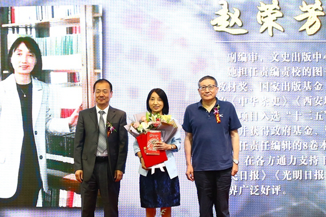 伴随着颁奖视频和掌声,程光旭为突出贡献作者贾平凹、阿来、王子今颁奖,杨祖培为优秀作者王双怀颁奖,熊莺为李继凯代表冯超颁奖,穆涛为贾玲颁奖,马进福为王向阳颁奖,王金秀为孙琪斌颁奖,刘东风为束鹏芳颁奖,魏立安为吴举宏代表宋正海颁奖。陕西师范大学出版总社编辑宋媛媛、张佩、王森、付玉肖、邱水鱼、王宏、张文婷、刘萍、刘筱、李佳琪等为获奖作者献上鲜花。