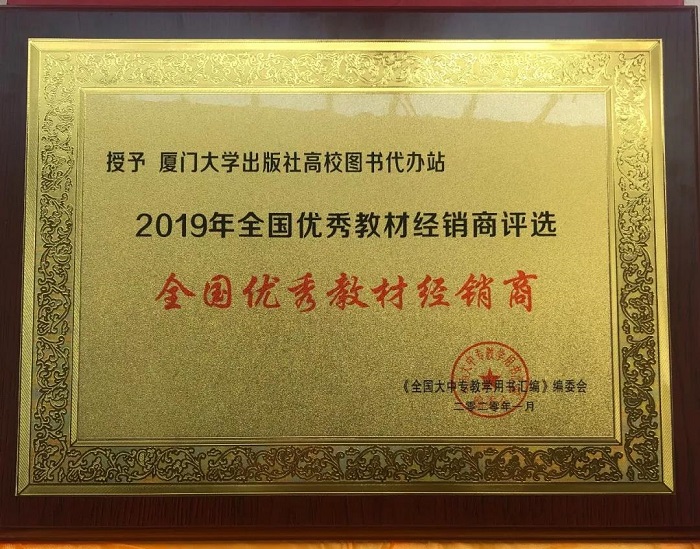 2020年1月8日,以“创新融合、赋能教育”为主题的第七届“全国高等教育教材峰会”在北京国际展览中心(静安庄馆)隆重举行。在本次峰会上,《全国大中专教学用书汇编》编委会公布了《2019年全国大中专教材优秀经销商和金牌营销经理人获奖名单》,经过专家组对全国200余家参评单位的认真遴选,授予厦门大学出版社高校图书代办站“全国优秀教材经销商”称号,这是厦门大学出版社代办站连续五年获此殊荣,同时授予厦门大学出版社营销中心副主任姜湃同志“金牌营销经理人”称号。