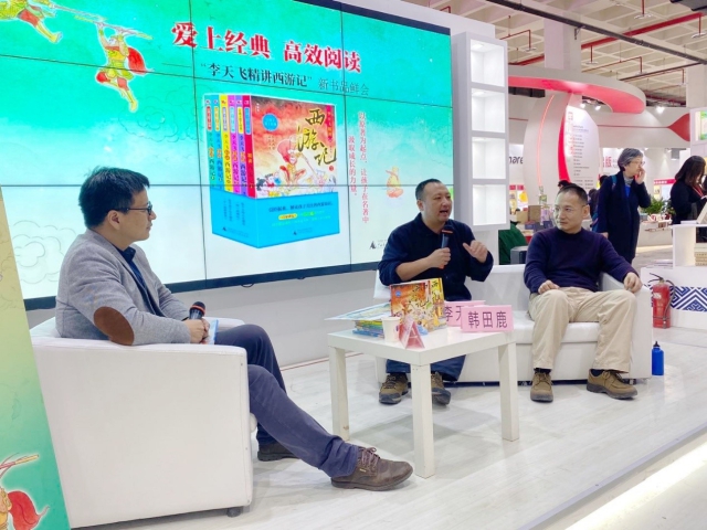 在本次活动中,李天飞、韩田鹿、李一慢三位老师围绕“爱上经典,高效阅读”主题,从“《西游记》这部书的特别之处”“孩子为什么需要阅读名著”“如何让孩子爱上经典”“如何让孩子们通过高效阅读体会阅读经典的快乐”等方面进行了讨论及分享。