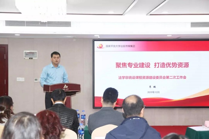 国家开放大学法学非统设课程资源建设委员会于2019年12月12日至13日在长沙召开第二次工作会议。会议旨在贯彻落实《国家职业教育深化改革实施方案》,总结国家开放大学法学非统设课程资源建设委员会(以下简称委员会)成立一年来的工作情况,制订2020年工作计划。本次会议由湖南广播电视大学(湖南网络工程职业学院)协办,国家开放大学出版传媒集团承办。湖南广播电视大学(湖南网络工程职业学院)副校长刘建军,国家开放大学出版传媒集团党总支书记、总经理匡贵秋,国家开放大学出版传媒集团副总经理韦鹏出席了本次会议。会议由委员会秘书长、国家开放大学出版传媒集团职业教育事业部主任赵杰主持。