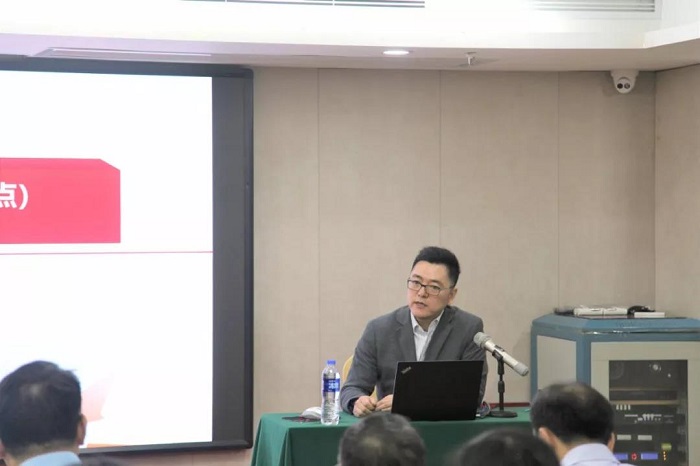 接着,委员会副主任委员、国家开放大学政法教学部董疆博士作了题为“国家开放大学法律事务专业建设概况”的报告。他从专业开设背景、专业建设现状和机遇与挑战三个方面对法律事务专业进行了详细的介绍。