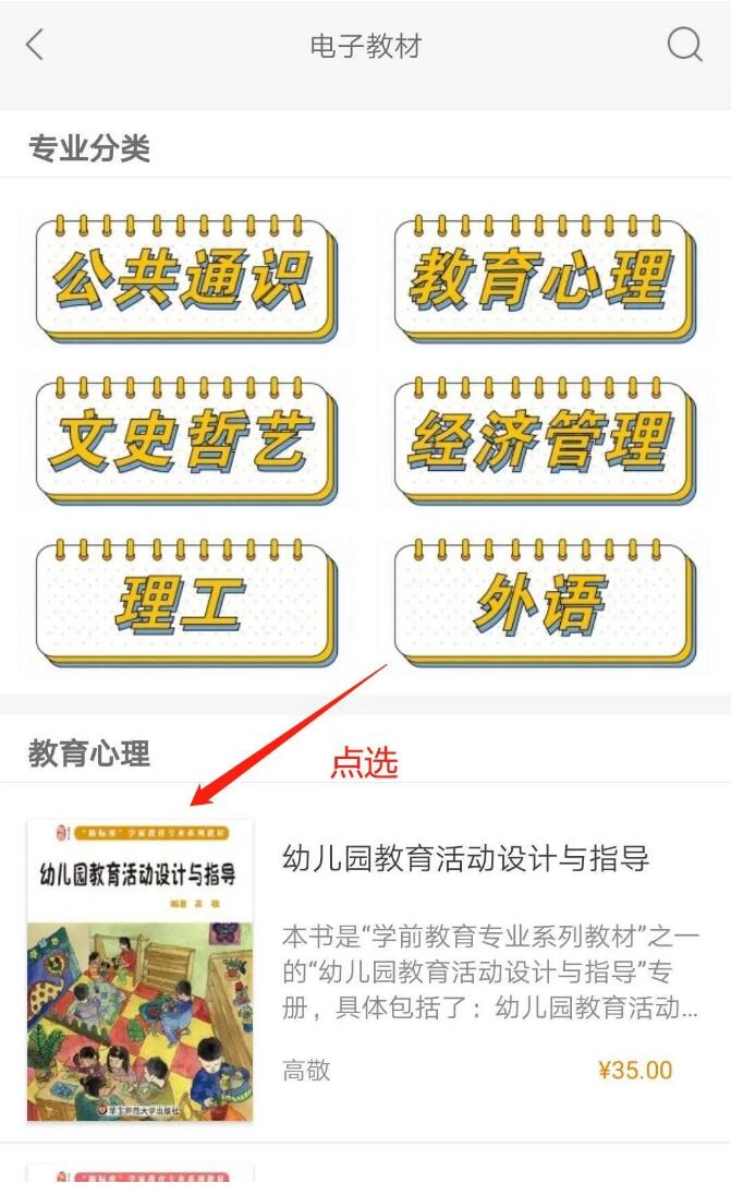 2. 主页面找到电子教材,点选所需图书的大类,或检索所需图书具体书名。(所有内页均为内测截图)