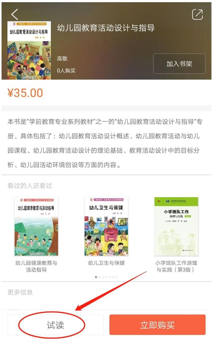 4. 在书本详情页点击左下角试读按钮,即可浏览试读内容。