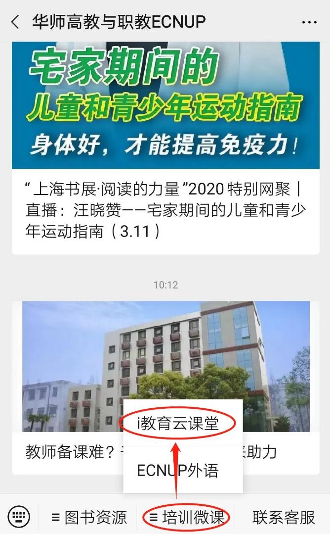 2. 点击底部功能模块“培训微课”中的“i教育云课堂”进入。