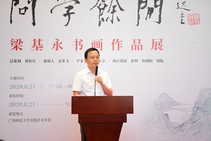 8月21日至9月2日,由广东省美术家协会、广西师范大学出版社(简称“广西师大社”)、粤港澳大湾区美术家联盟主办,广西师大社美术馆承办,肇庆美术馆、礼堂有礼艺术工作室、广西师范大学美术学院协办的“问学余闲——梁基永书画作品展”在广西师大社美术馆展出。