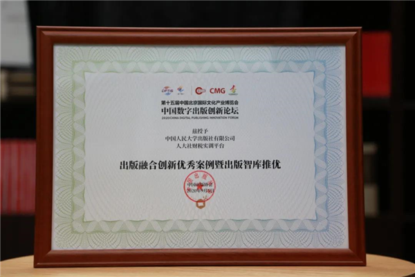 2020年9月5—10日中国数字出版创新论坛第十五届中国北京国际文化产业博览会在北京奥林匹克中心文化大道广场展棚区举办,中国人民大学出版社凭借“人大社财税实训平台” 可扩展的智能化数字平台以及权威优质的内容资源获得“出版融合创新优秀案例暨出版智库推优”奖。