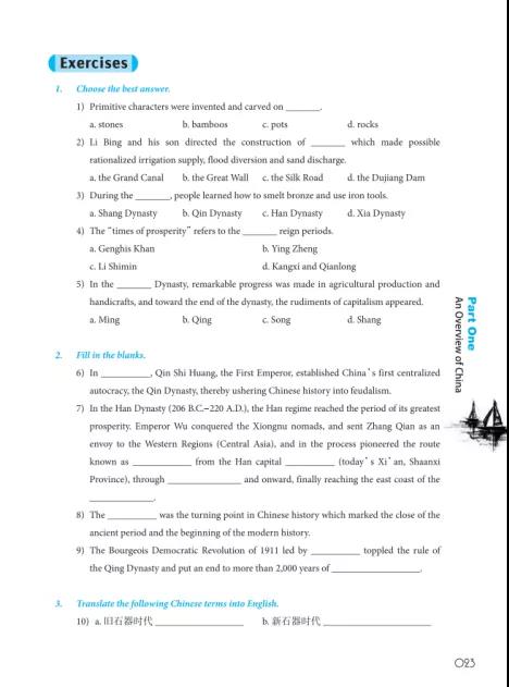 每章后面的练习按照从易到难、从理解到应用的顺序,侧重特定场景中语言的实际运用,具备很强的针对性,让学生学练结合,巩固课堂所学的知识。