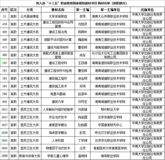 中南大学出版社21本教材获评“十三五”职业教育国家规划教材 - 出版动态 - 中国高校教材图书网