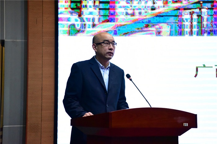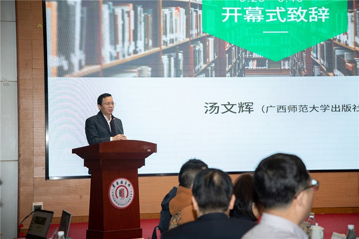 广西师范大学出版社集团党委副书记、总编辑汤文辉致辞 (朱昊 黄登 摄)