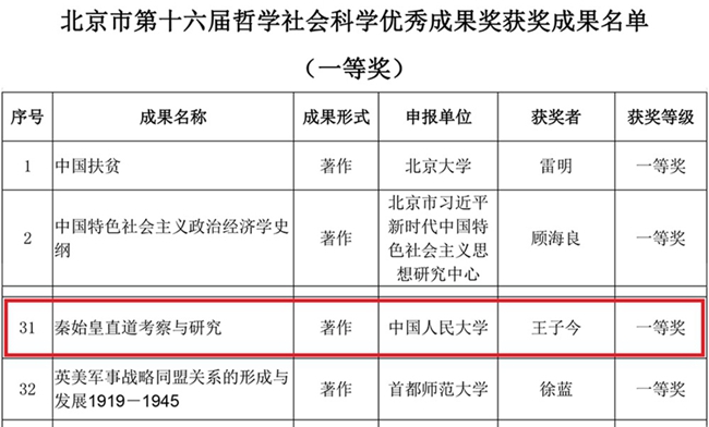 日前,北京市第十六届哲学社会科学优秀成果奖获名单公布,由陕西师范大学出版总社出版的《秦始皇直道考察与研究》荣获一等奖。