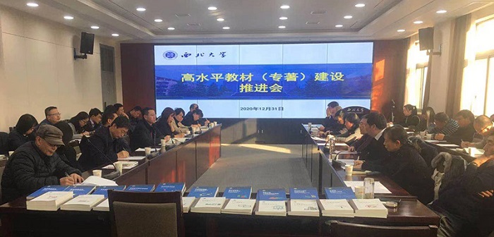 2020年12月31日,西北大学高水平教材(专著)建设推进会在长安校区第一会议室召开,校长郭立宏、副校长赖绍聪,教务处、研究生院、科技处、社科处、规划与学科处、出版社负责人,各院(系)相关负责人及部分高水平教材作者参加会议,会议由赖绍聪副校长主持。