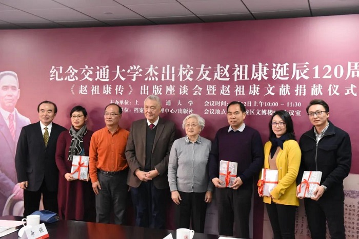 为纪念交通大学杰出校友赵祖康诞辰120周年(2020年),2021年1月12日上午,《赵祖康传》出版座谈会暨赵祖康文献捐献仪式在上海交通大学闵行校区文博楼举行。赵祖康之子——原上海市政府参事、上海市经委副总工程师赵国通,中国科学院院士赵国屏;上海交通大学原党委书记王宗光,上海交通大学副校长张安胜,上海交通大学出版社党委书记、董事长钱天东等出席活动。