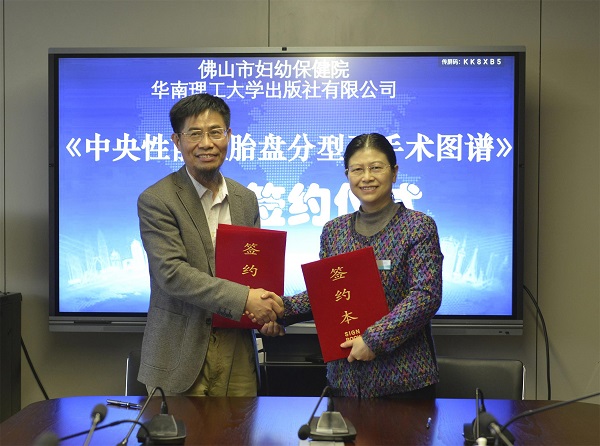 2021年3月5日下午3时,佛山市妇幼保健院与华南理工大学有限公司在佛山市妇幼保健院新城院区举行了《中央性前置胎盘分类及手术图谱》图书出版服务项目签约仪式。佛山市妇幼保健院郭晓玲书记、刘正平主任,华南理工大学出版社卢家明社长、周莉华副总编以及其他相关负责人出席了仪式。