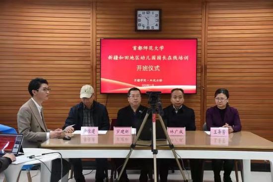 近日,京疆学院和“双优云桥”项目组召开了新疆和田地区幼儿园园长云跟岗培训项目总结研讨会。该项目在北京市教委的指导和学校党委的领导下,于2020年11月初开始进行线上各项跟岗培训,2021年1月初完成该项目的所有培训内容。京疆学院作为项目实施主体,在疫情防控常态化背景下,依托首师大出版社科技成果转化团队自主研发的 “双优云桥”智慧教育研修平台,通过线上培训形式,实现了首都教育专家“一对一”“云指导”,参训学员“一对一”“云跟岗”,学前教育学院师范生助教“一对一”“云帮扶”,让首都优质教育资源跨区域共享,全面提升了新疆和田地区59所幼儿园65位园长的教育管理水平、专业知识和信息化素质,打造了高效低耗、多方联动、精准实效的 “反转式云跟岗”培训新模式。