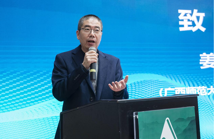 广西师范大学出版社集团总裁姜革文在致辞中回顾了出版社的发展之路。他表示,在各位领导、嘉宾、朋友的支持下,广西师大人凭着“老黄牛”的精神,披荆斩棘,砥砺前行;以“拓荒牛”的精神,迎接挑战,创造新机;以“孺子牛”精神,回馈读者,回报社会,在各类专业榜单上,在各个专业领域成绩不俗。站在实现“两个一百年”奋斗目标的历史交汇点上,广西师范大学出版社将抓住这一历史机遇期、关键期和转折期,加倍努力,星夜兼程,用更多的好书更好的服务来向大家的期待靠近。