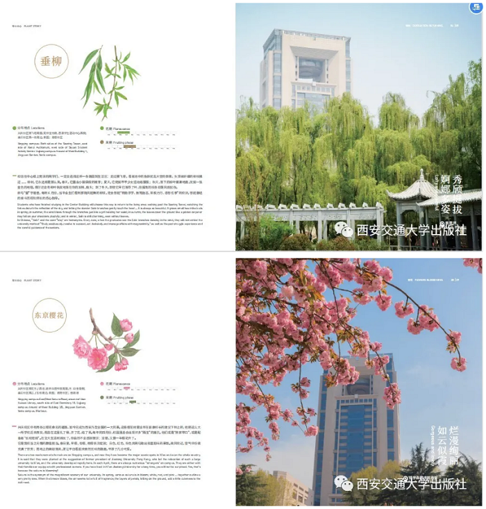 本书分为“锦树”“繁花”和“芳草”三个篇章,通过丰富的图片和生动的文字介绍了西安交通大学最具代表性的25种植物。可以说,这些植物蕴含着交大人的品格和精神。“锦树”篇选取部分乔木和禾本科植物,代表交大人对科学真理的不懈追求和优秀品质的代代传承;“繁花”篇展示的诸多花卉,象征西安交通大学学术繁荣、百家争鸣的浓厚氛围;“芳草”篇所介绍的校园中一些并不“显眼”的植物,犹如那些甘当绿叶的教职工们,为学校建设默默散发着自己的光和热。