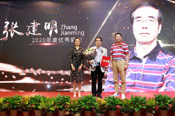 在给优秀编辑颁奖环节,肖云儒、曾静平、沈雪春、夏献平、李惠军为邓微、张建明、郭建刚、张广斌、曹海英颁奖,邓微的丈夫马宏良、郭建刚的儿子郭思宇、张广斌的妻子王华、曹海英的儿子陈启航及陕西师范大学出版总社编辑钱栩分别为他们献花,同时编辑家属也收到赵倩、王雅琨、杨珂、陈可献上的鲜花和礼物。