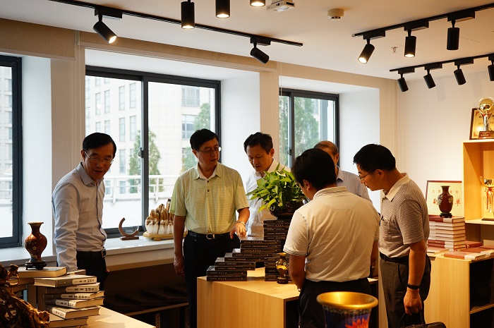 5月28日,江苏省政协原副主席、江苏国际文化交流中心理事长罗一民、南京大学副校长邹亚军一行考察南京大学出版社,并就未来张謇研究中心的设立、学术图书的后续出版事宜与南大社展开座谈会。南京大学出版社社长金鑫荣等一行陪同。 南京大学出版社社长金鑫荣汇报了近年来出版社的重点出版工程和特色文化产业建设的开展情况。在听取了相关情况介绍后,罗一民理事长充分肯定了南大社近年来所取得的优异成绩。他谈到,南京大学出版社作为中国大学出版社第一方阵的重要一员,在弘扬中华优秀传统文化、积极推动学术“走出去”以及建设中国特色的学术话语评价体系方面都做出了积极的贡献。南大社出版的精品图书也在学界和广大读者中收获了极高的美誉度和影响力,这些成绩充分体现了新时代出版人的使命与担当。