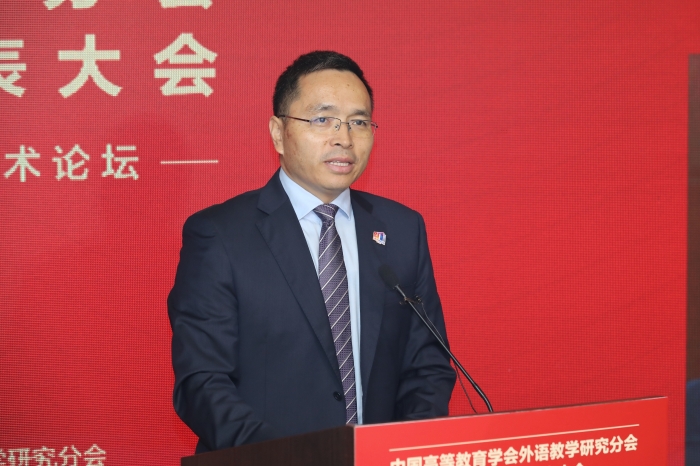 北京外国语大学党委副书记、校长杨丹对莅临大会的领导和嘉宾表示热烈欢迎,对中国高等教育学会的指导和各兄弟院校的支持表示衷心感谢。他指出,纵览全球视域,世界正经历百年未有之大变局,我们应致力于推进我国国际地位和综合实力的有序提升,积极参与全球教育治理,树立在国际舞台上的负责任大国形象。外语教学研究分会有责任、有义务主动承担这份历史使命,服务国家战略需求,继续推进各语种之间的交流,加大跨学科和专业融合力度,不断深化新时代外语人才培养改革创新。作为分会新一届秘书处挂靠单位,北外将重点做好外语学科的内部聚合、外语学科和非外语学科的交叉融合、国内外名校学科资源的跨校联合三篇文章,聚焦“全球语言、全球文化、全球治理”三大领域,立足国内,放眼全球。北外愿为分会工作提供充分支持和保障,将分会办成外语教学研究者沟通、交流和发展的平台,办成我国名副其实的“外语教育之家”。