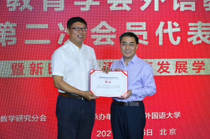 6月26日,在举国上下共庆中国共产党建党100周年之际,中国高等教育学会外语教学研究分会第二次会员代表大会暨新时代外语教育发展学术论坛在京召开。本次会议由中国高等教育学会外语教学研究分会主办,北京外国语大学承办,外语教学与研究出版社协办。来自全国近120所高校的160余位代表以及外语教育研究领域的专家学者参加会议。大会选举产生中国高等教育学会外语教学研究分会第二届理事会。北京外国语大学党委书记王定华当选新一届理事长。