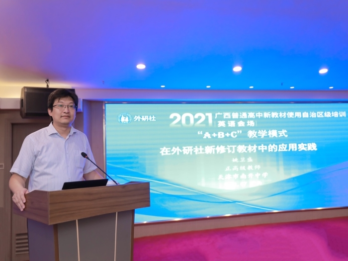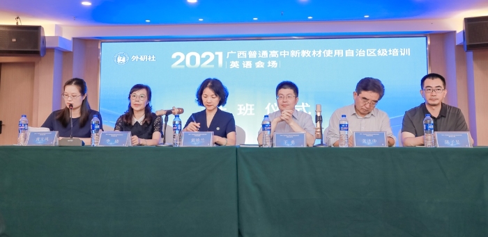 根据教育部《关于做好普通高中新课程新教材实施工作的指导意见》和《新修订普通高中课程方案和课程标准培训工作方案》的要求,为提高广西壮族自治区普通高中学科教师使用新教材、实施课堂教学的能力,更好地适应普通高中新课程改革,2021年7月13-14日,由广西壮族自治区教育厅主办、广西教育研究院承办、外语教学与研究出版社(以下简称“外研社”)协办的“2021年普通高中新教材使用自治区级培训(英语学科)”在南宁成功举办。首届自治区普通高中课程改革外语教学指导专委会委员、广西教育研究院英语学科中心组成员、以及来自桂林、贵港、贺州、百色、河池、钦州和防城港七个地市的教研员及骨干教师共60余位参加了本次培训。