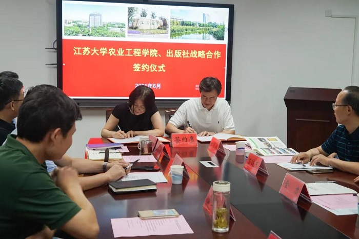 会上,与会人员开展了“坚持立德树人,献礼建党百年”党史学习教育专题活动,共同学习了习近平总书记在青海考察期间重要讲话精神。江苏大学农业工程学院党委书记金玉成讲述了江苏大学出版社与农业工程学院战略合作的重要意义,江苏大学出版社社长施康介绍了出版社的工科出版优势和“丛书”出版前景,农业工程学院院长由天艳介绍了学院发展情况和深化双方合作的打算,农业工程学院刘继展研究员介绍了“设施农业智能化丛书”的组织、编撰和内容亮点,直属党支部书记、总编辑陈远东介绍了确保“丛书”高质量出版的举措,农业工程学科带头人毛罕平教授就编著、出版精品和特色教材谈了创新性意见。