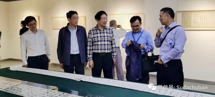 苏州大学出版社、上海书画出版社、西泠印社出版社、浙江人民美术出版社等单位负责人先后发言,介绍图书出版情况,毛羽总编辑介绍了《书法报》“祝嘉书学专刊”出版情况。陈兴昌总编辑在介绍苏大社《祝嘉书学论著全集》(8卷)、《苏州书学论文选》(第三辑)出版情况时表示,《祝嘉书学论著全集》是国家出版基金项目,丛书共8卷,近400万字,编纂、编校工作难度大、要求高,编撰出版过程中得到苏州市书法家协会的充分信任和大力支持。他向始终关心丛书出版工作的法界专家以及众多媒体朋友表示感谢,并表示苏大社将虚心向参加本次活动的出版社同行学习,紧跟时代发展,为苏州、为江苏、为祖国文化事业繁荣做出更大把贡献。