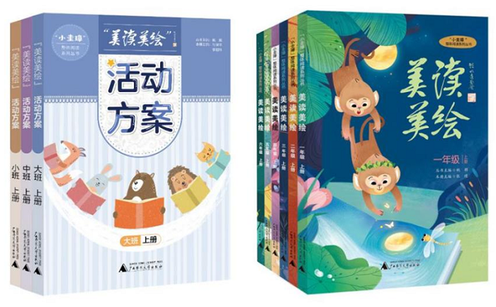 据了解,“小圭璋”整体阅读系列丛书分为《“美读美绘”活动方案》(小班、中班、大班)和《美读美绘》(1—6年级)。《“美读美绘”活动方案》是学龄前3—6岁幼儿的阅读活动指导用书,主要为幼儿园教师提供实操性强的活动方案指导。《美读美绘》是为小学一年级到六年级学生开展的绘本阅读的学生读本,每个年级分为上下两册。