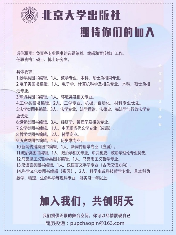 北京大学出版社多岗位招聘 - 招聘信息 - 中国高校教材图书网