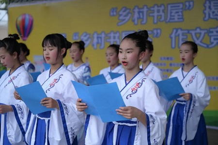 揭牌和启动仪式在大河中心校同学们精彩的朗诵节目《曲韵书香》中结束。桂林银行、广西师范大学出版社文化发展基金会、广西期刊传媒集团、上海晨光公益基金会、上阳家村委相关负责人等参加了本次活动。