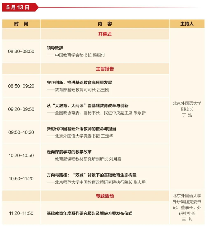 发布报告,提供方案:论坛将发布“教材”、“阅读”、“测评”等基础外语教育年度研究报告,推出外研U学、分级阅读体系、课后服务体系等教育服务综合解决方案,最新研究成果和服务体系,不容错过;