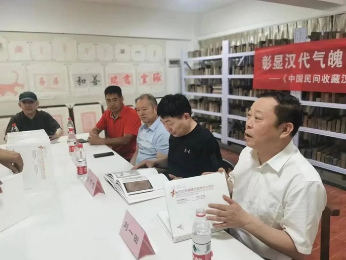 6月12日,国家出版基金项目《中国民间收藏汉画像砖石选集》出版研讨交流活动在郑州举行。该丛书执行主编、河南大学文化产业与旅游管理学院副编审王四朋,河南省政协委员、河南省文物考古研究院研究员、三国魏晋南北朝研究中心主任、曹操墓考古项目领队、考古队队长潘伟斌,西泠印社社员、中国书法家协会会员张永乐,河南省收藏家协会常务副会长、郑州市一田古陶瓷博物馆创始人刘一田,中国收藏家协会书报刊委员会副会长、红色收藏家杨翔飞,河南省青年美术家协会副主席、河南省收藏家协会副秘书长巴云飞等人出席交流活动。