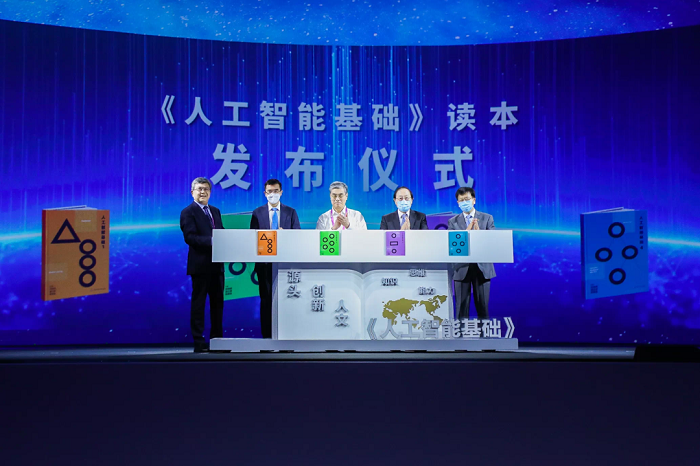 9月1日,《人工智能基础》系列丛书发布仪式在2022年世界人工智能大会(WAIC)科学前沿全体会议上举行,三位主编汤晓鸥、潘云鹤、姚期智教授,以及华东师范大学校长钱旭红教授共同为《人工智能基础》系列丛书揭幕。