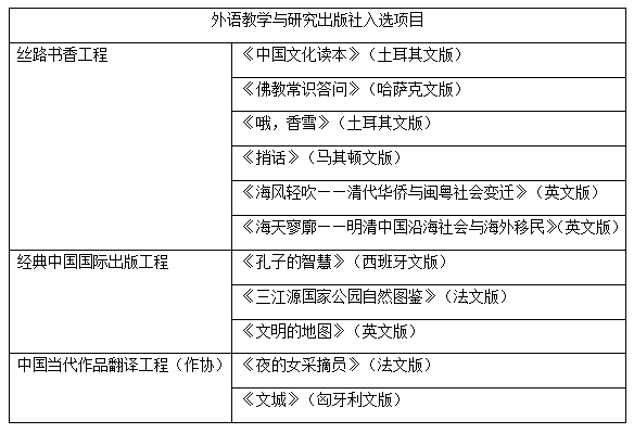 近年来,外研社积极响应文化“走出去”战略和“一带一路”倡议,加快国际化和“走出去”步伐,并探索创新“走出去”方式,与国内兄弟企业开展联合“走出去”。今年获立项资助的《捎话》(马其顿文版)、《三江源国家公园自然图鉴》(法文版)、《海风轻吹——清代华侨与闽粤社会变迁》(英文版)、《海天寥廓——明清中国沿海社会与海外移民》(英文版)、《文明的地图》(英文版)分别为外研社与江苏译林出版社、江西高校出版社及中信出版集团的联合输出成果。