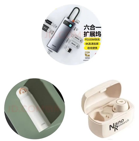 奖品介绍:六合一扩展坞、蓝牙耳机、保温杯