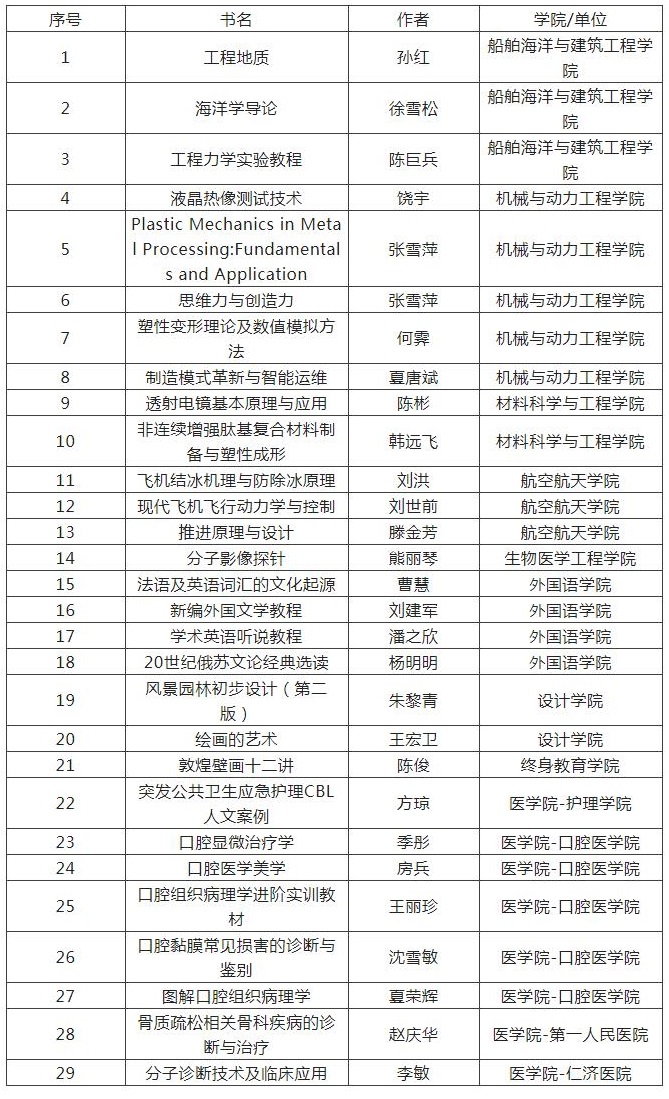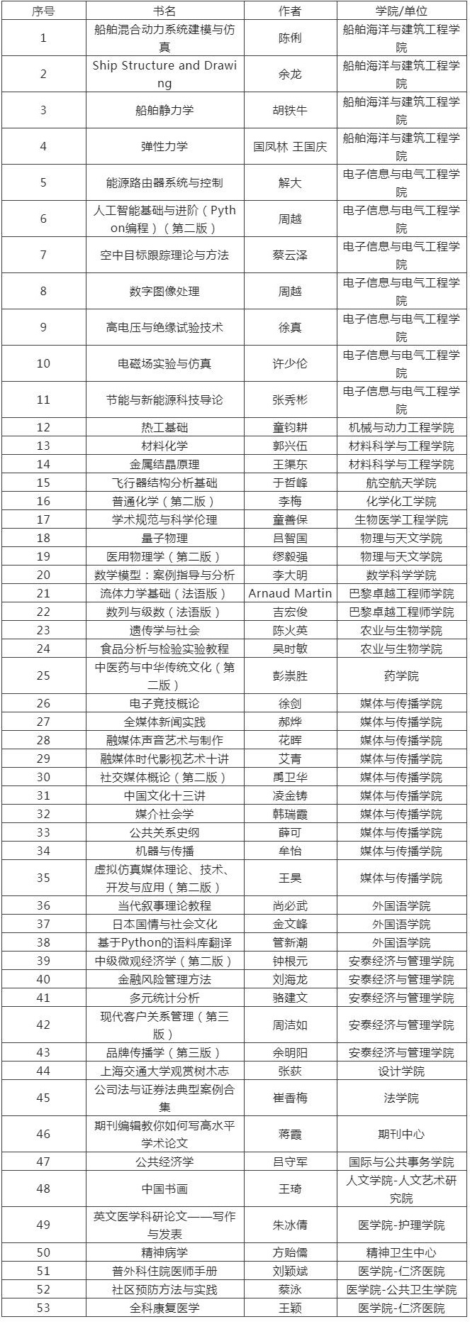 上海交通大学出版社教材出版基金(2022年度)资助名单