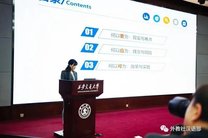 第二个报告由西安交通大学国际教育学院副院长纪婷分享,就西安交通大学国际学生中国国情教育体系的规划与开展进行了系统化的介绍,展现了以多板块互联互通的方式促进国际学生德智体美劳全面发展的实践成效。