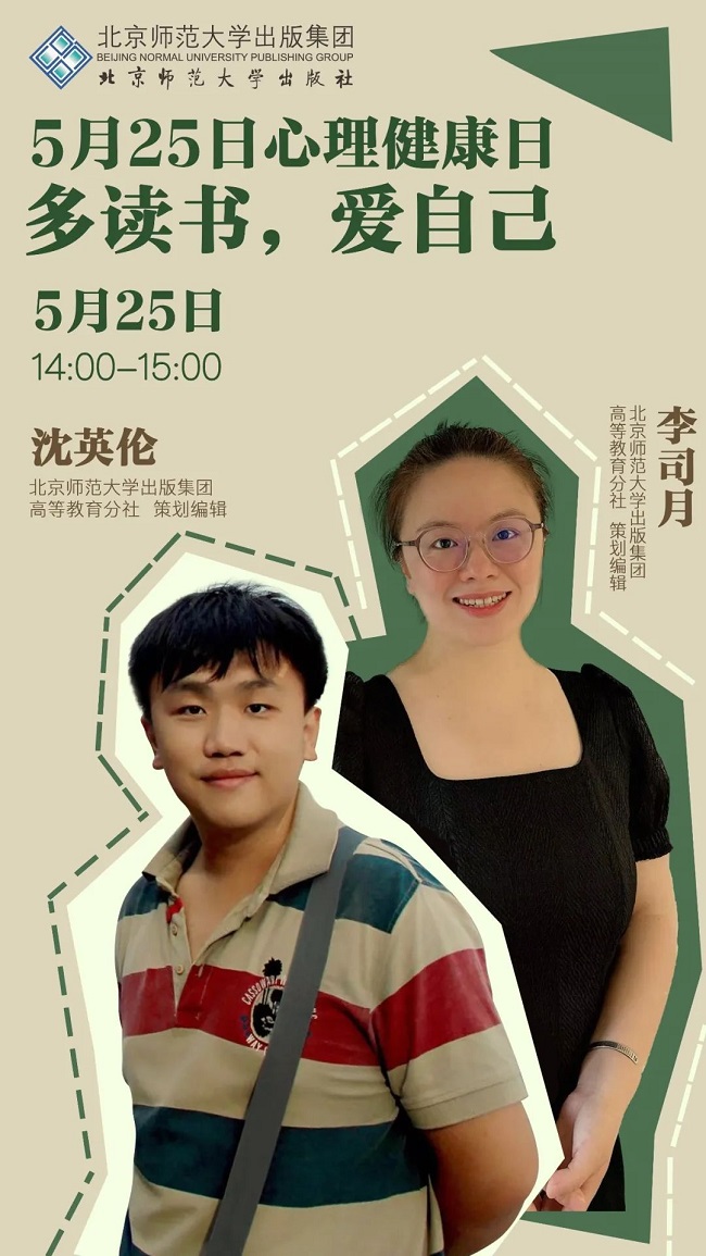 在5月25日的直播中,将为大家提供完整书单,一起聊聊心理健康的那些事。欢迎与我们一起,在书籍中,找到自己,学会爱自己。