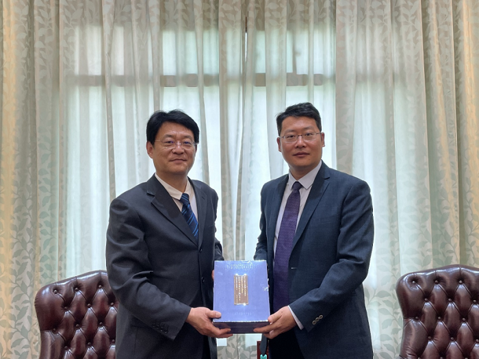 2023年5月26日,在吉隆坡国际书展举办之际,外研社党委副书记、副董事长、常务副社长刘捷率团拜会中国驻马来西亚大使馆政务公参林士光,就中马人文交流和出版合作进行了亲切友好的交谈。