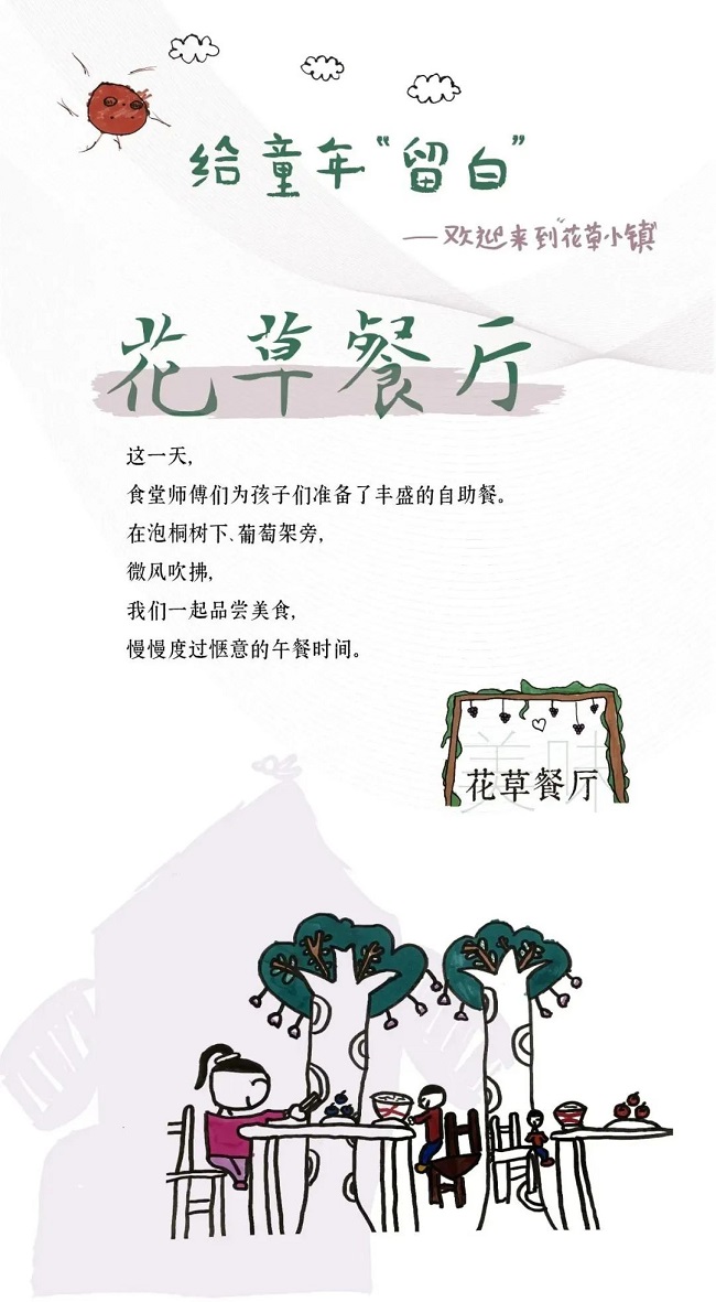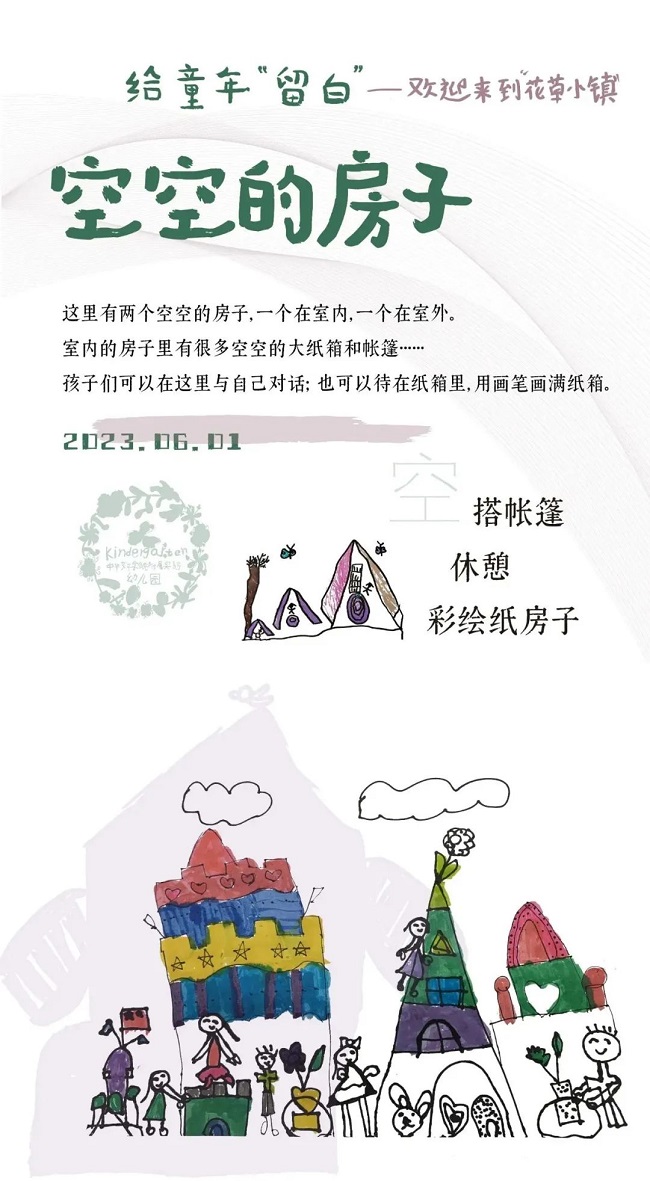 这一天,孩子们将在“花草小镇”里的9个区域中体验另一种生活。热情欢快将与慢、空、松、静相融合,用“留白”的方式展示与衬托童年生活的魅力和儿童精神世界的丰富性。