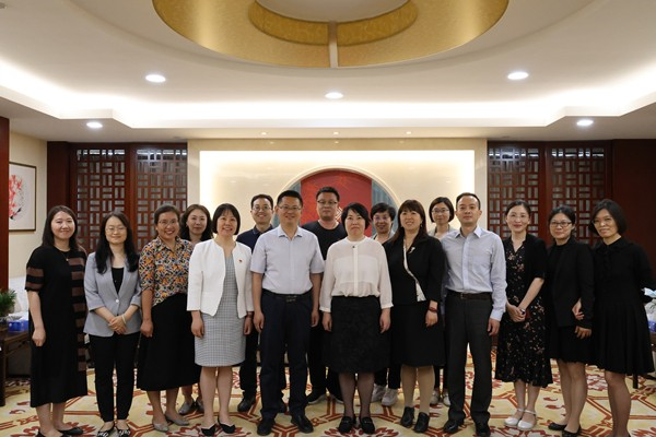 为深入开展学习贯彻习近平新时代中国特色社会主义思想主题教育,以深化调查研究推动解决发展难题,5月18日,中国人民大学出版社副社长王磊,党委副书记、纪委书记刘玮带队的中国人民大学出版社调研组一行七人赴北京师范大学出版社进行主题教育调研,受到北京师范大学出版社党委副书记江燕、郑伟的热情接待,在参观考察的同时,与兄弟社相关对口部门负责人进行了调研座谈。