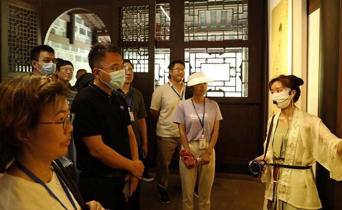 习近平总书记在四川眉山考察,前往三苏祠了解历史文化遗产保护等情况时,指出:“中华民族有着五千多年的文明史,我们要敬仰中华优秀传统文化,坚定文化自信。要善于从中华优秀传统文化中汲取治国理政的理念和思维,广泛借鉴世界一切优秀文明成果,不能封闭僵化,更不能一切以外国的东西为圭臬,坚定不移走中国特色社会主义道路。”西南交通大学出版社全体党员、干部和职工沿着习近平总书记的足迹,集体走进眉山的“三苏祠”,深刻感悟中华优秀传统文化的博大精深与独特魅力,同时进一步坚定了全社上下的文化使命和文化担当,坚持讲好中国故事,传播好中华文化。